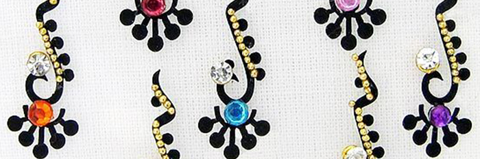 The bindi has a deep cultural presence in the Indian subcontinent and is said to be placed over the sixth chakra representing the ‘third eye’. Traditionally the bindi comes in the form of an oil or powder dot but it has since evolved, especially when used in western culture to include different designs and costume jewels. Shop our range of beautiful bindis today.