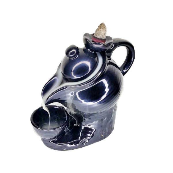 Enhance your space with our beautiful glossy black ceramic backflow incense burner, featuring an eye-catching teapot and cup design. When a backflow cone is placed on the handle, smoke gently flows from the teapot’s spout and collects inside the teacup below, creating a mesmerizing display.