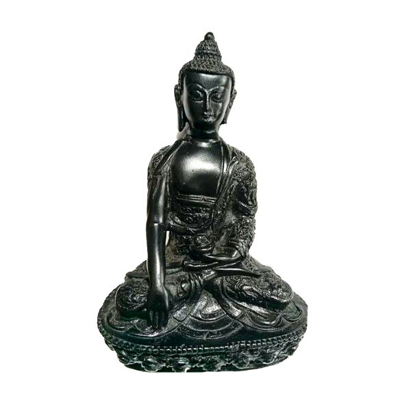 The Buddha is depicted in a meditative posture, adorned with a snake-dragon shawl, symbolizing peace and protection.