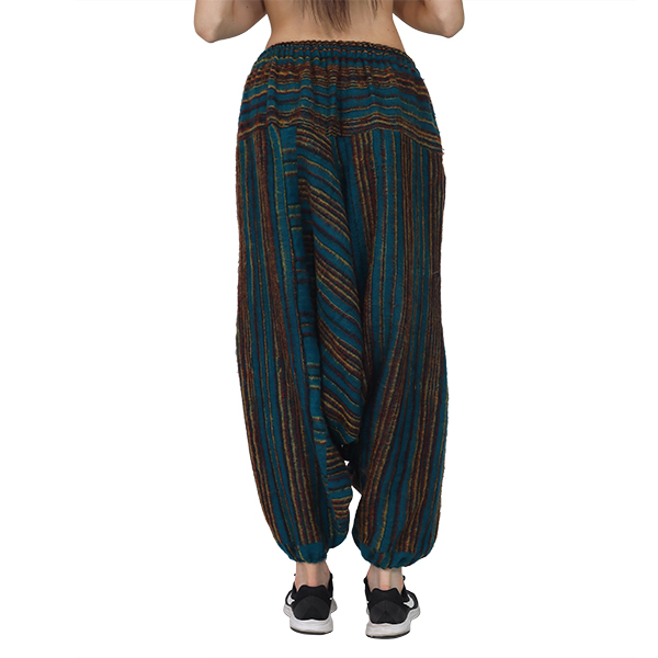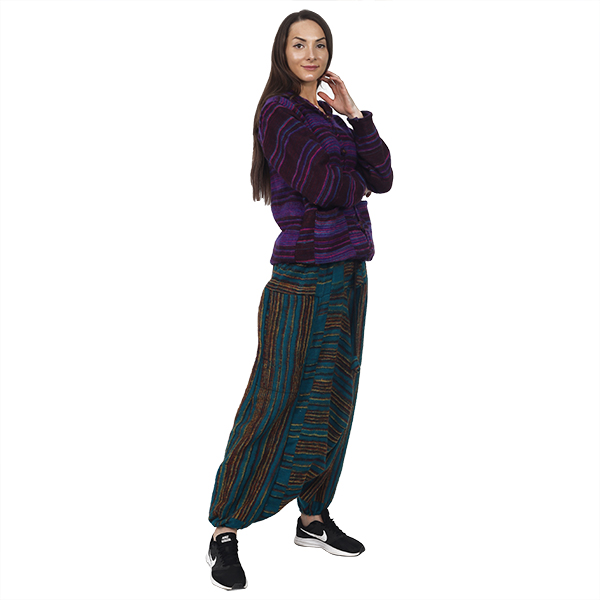 This item comes in a variety of colours (the colour in the photographs is only an example). If you would like to know more about the colours that are currently in stock then please phone us. Otherwise a good mix of colours will be sent. These trousers are produced in one size which fits most and are vegan friendly as they are made from 80% Acrylic 20% Polyester.