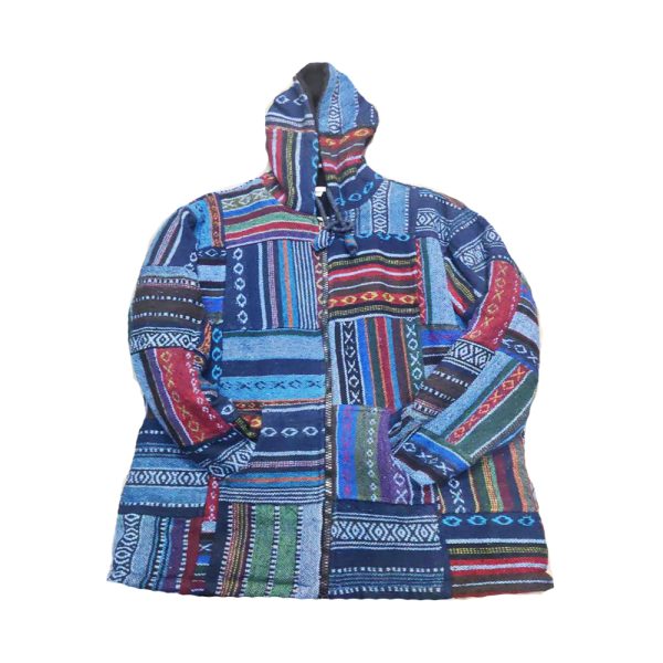 These 100% cotton, fleece lined jackets are decorated a variety of symbols including buddha eyes. There are two pockets and the hood has a drawstring to add adaptability and comfort. It can be worn by both men and women.