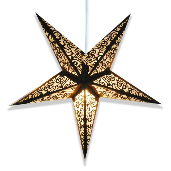 Made from thick card with attachable string ties to fit around your light fitting. They measure 40 cm from point to point and now come in individual packaging.