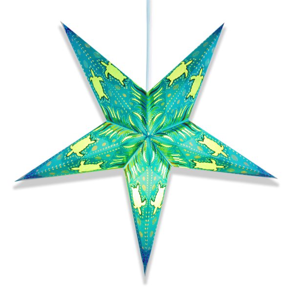 Made from thick card with attachable string ties to fit around your light fitting. They measure 60 cm from point to point and now come in individual packaging.
