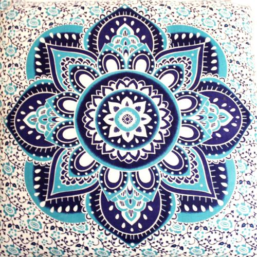 Lotus Blue Handmade Square Cushion Pillow – Home Decor – Boho Gift Ideas – Cushion Handmade Gifts – 40cm square x 8cm high