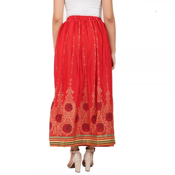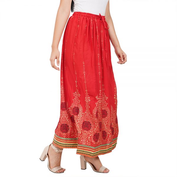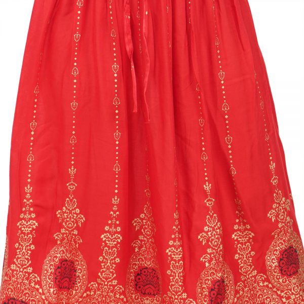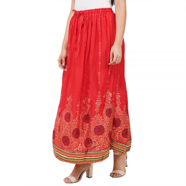 Classic Gypsy Skirt with glitzy gold drawstring. Intensely detailed with a beautiful gold print and border, these soft maxi skirts are an essential addition to any boho wardrobe! An elasticated waist ensures a generous, flexible fit. Mixed Colours Supplied. One Size. Due to the handmade nature of this garment, designs may vary slightly.