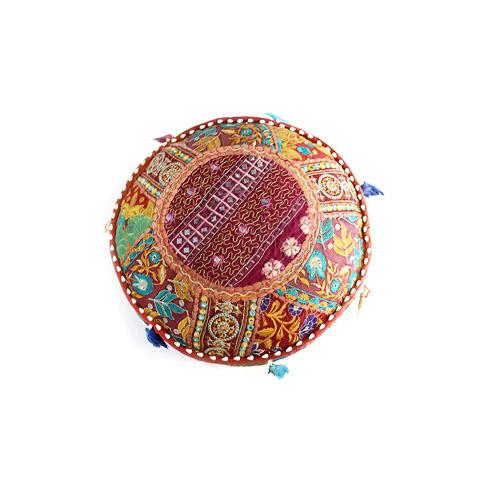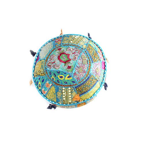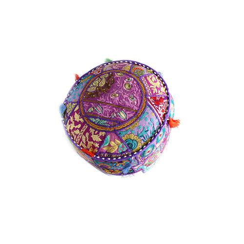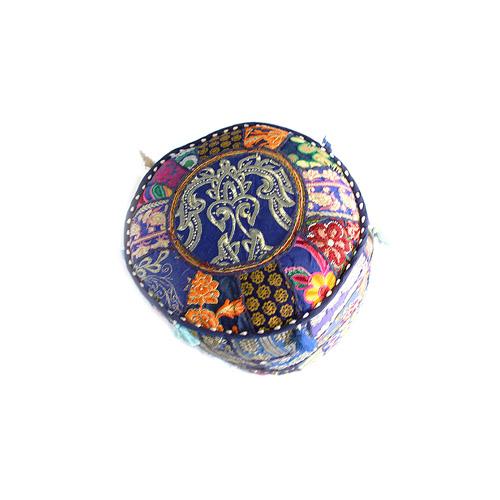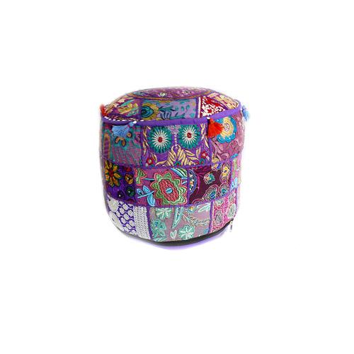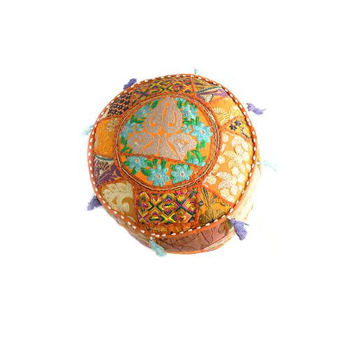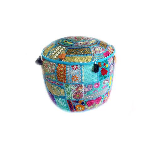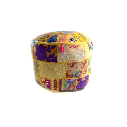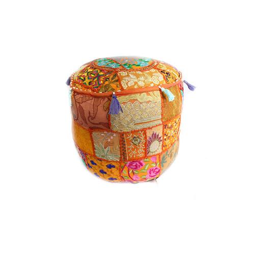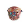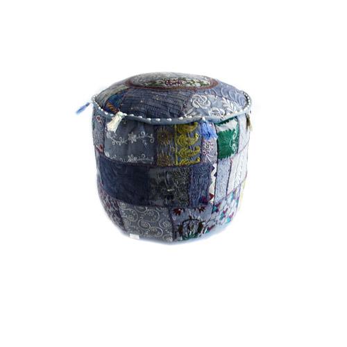 Handmade Patchwork Pouffe w/ Tassels: